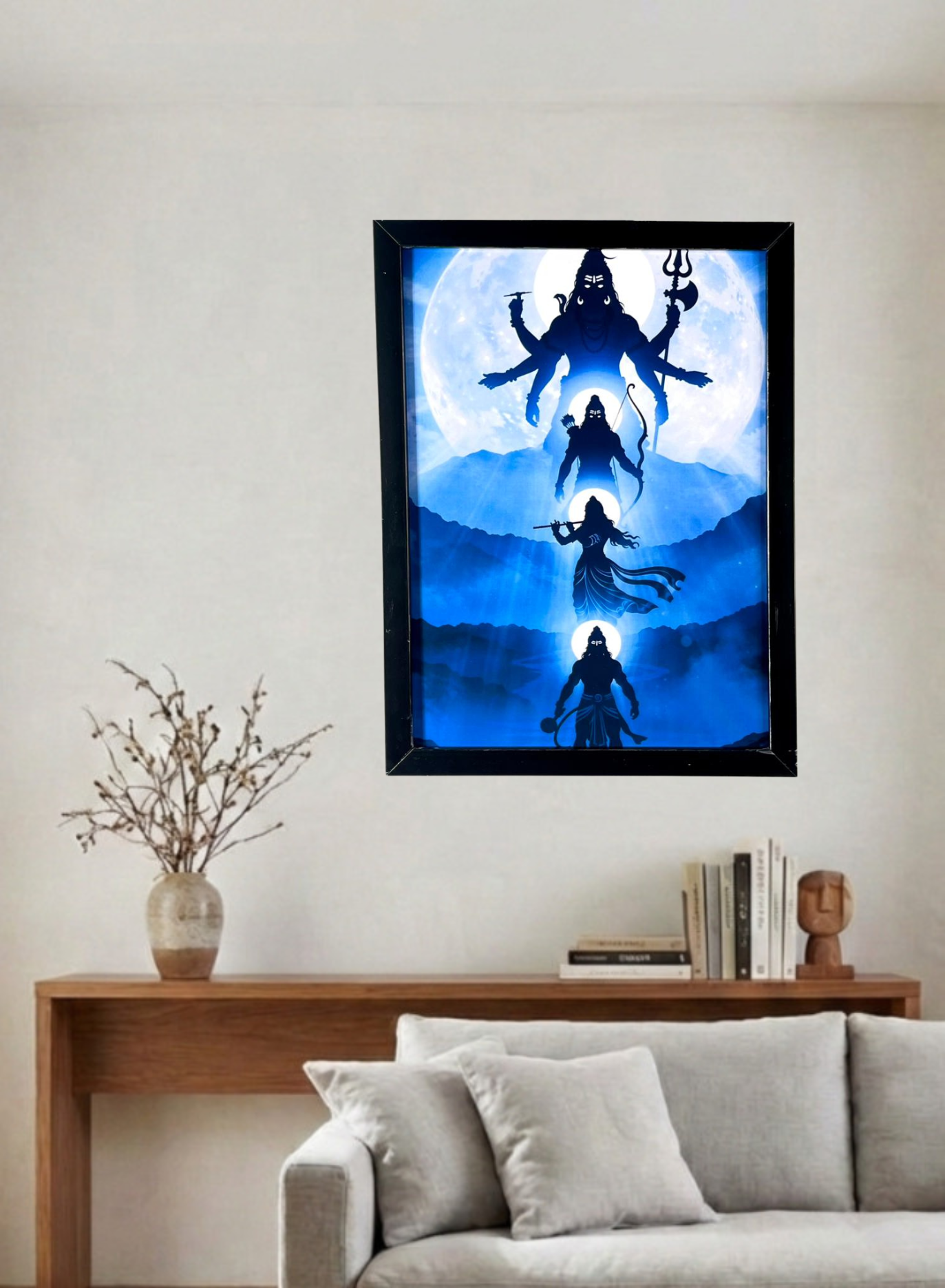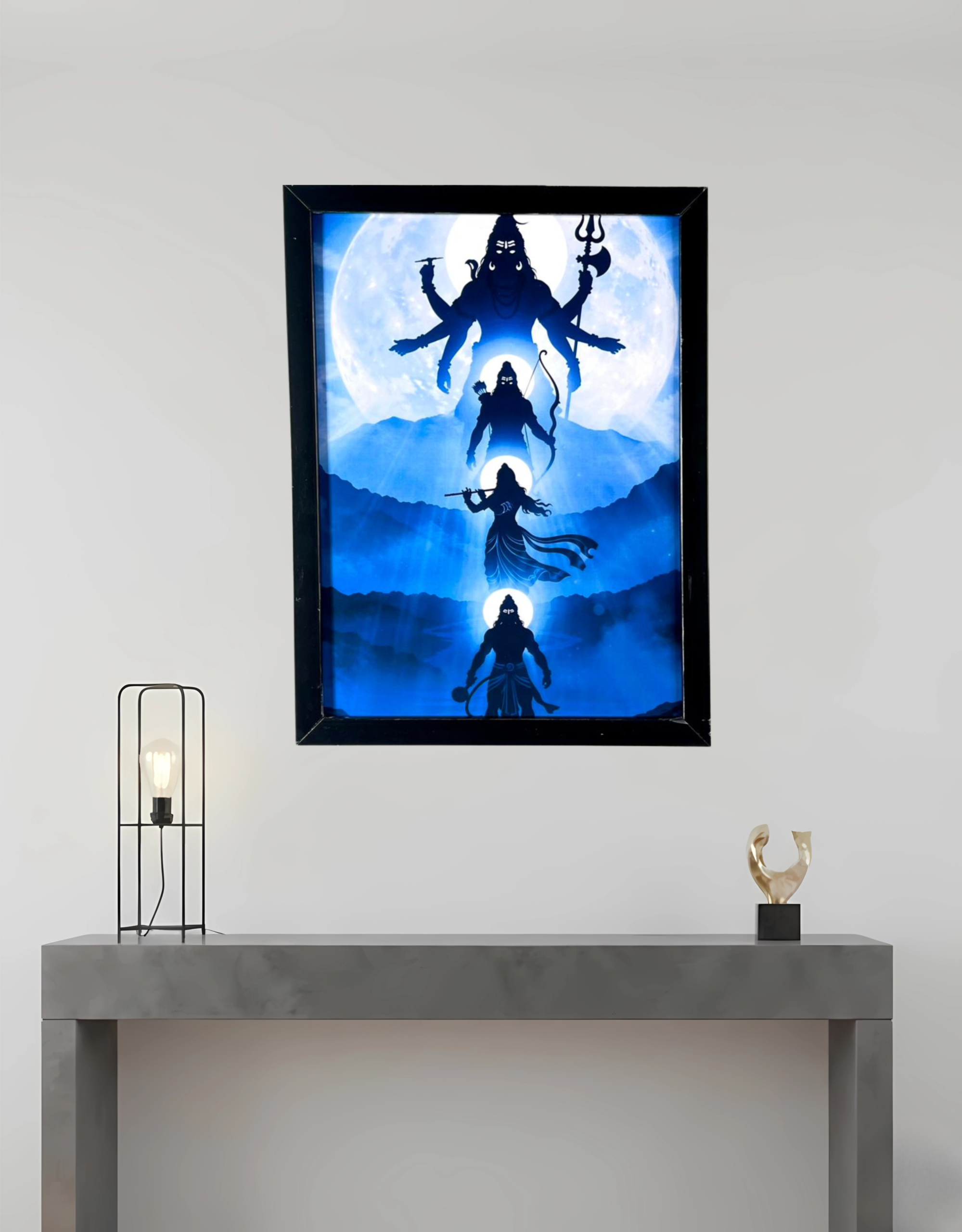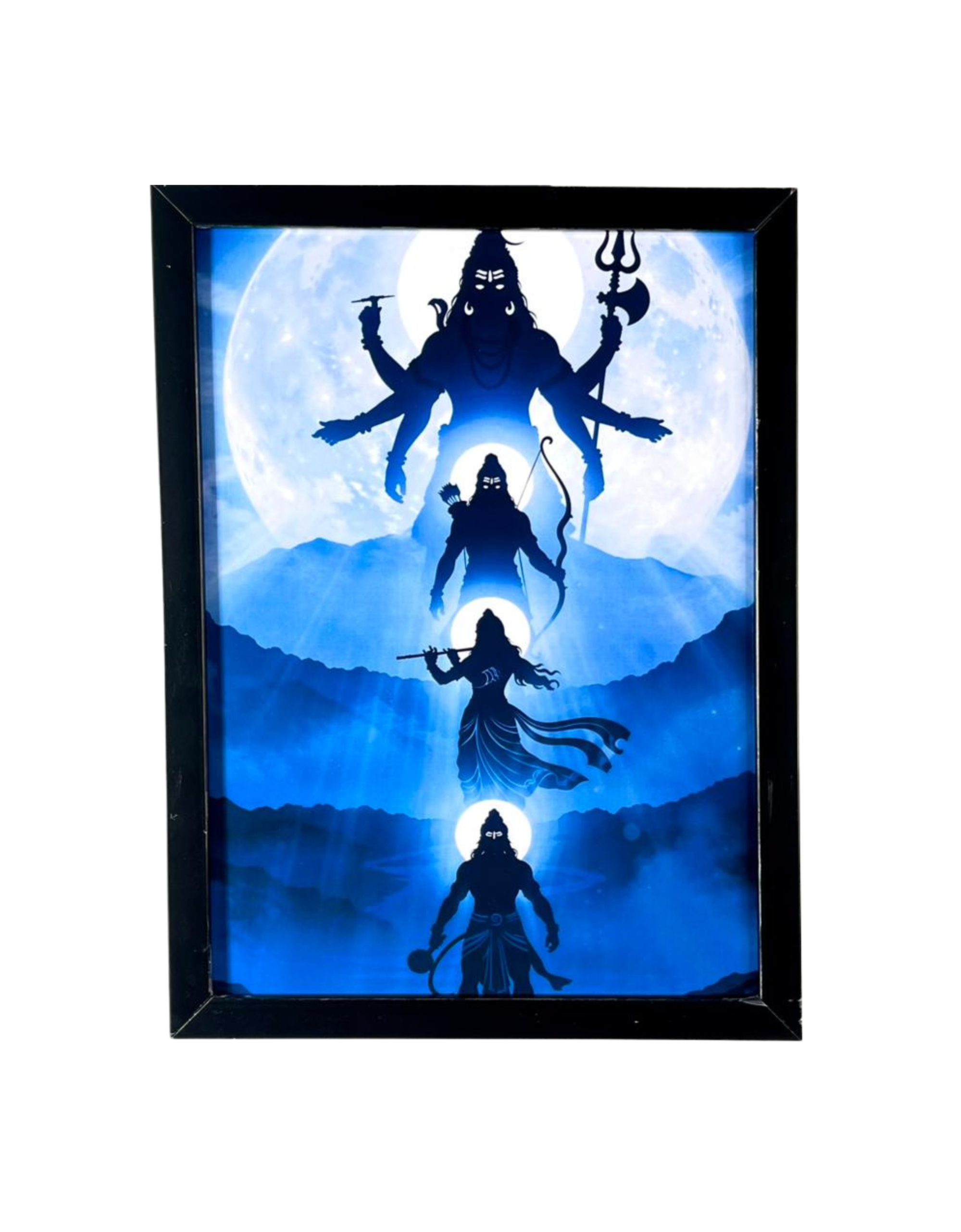 A premium spiritual wall decor featuring divine visuals and sacred art, enclosed in a sleek black unbreakable frame. Designed for homes, studios, and personal spaces, this frame brings peace, positivity, and devotion with durability and modern elegance.