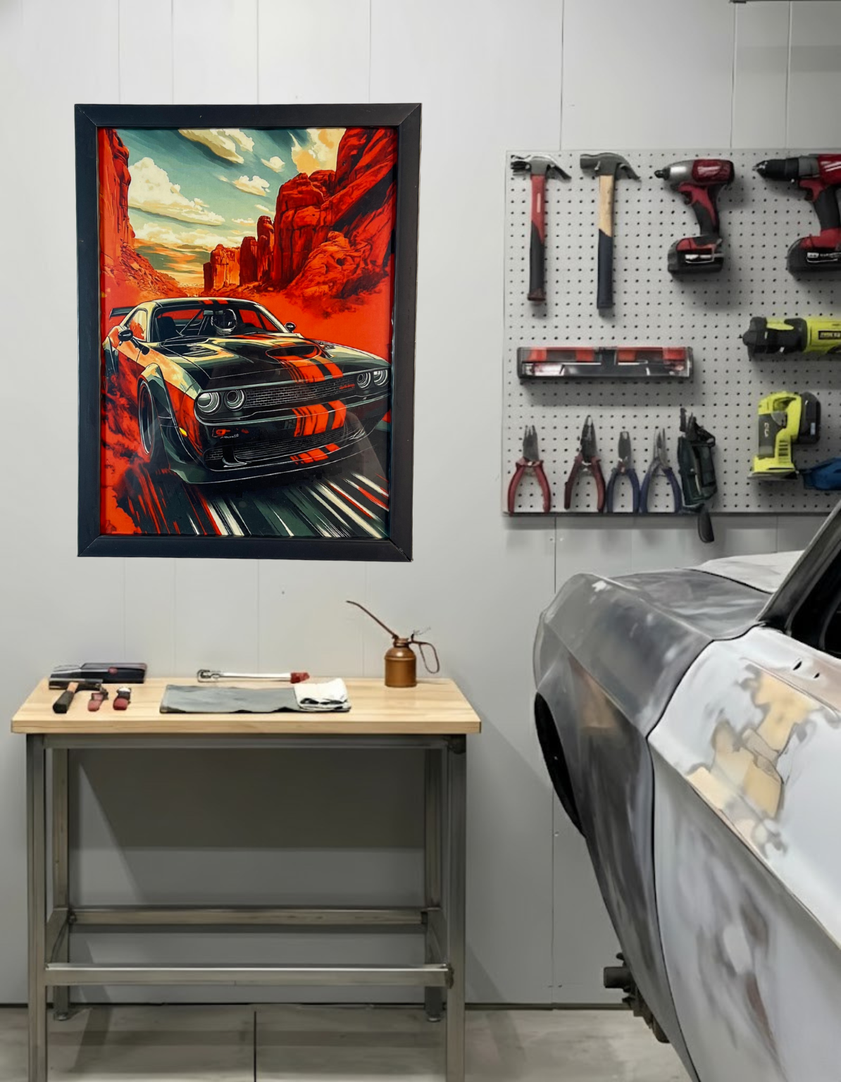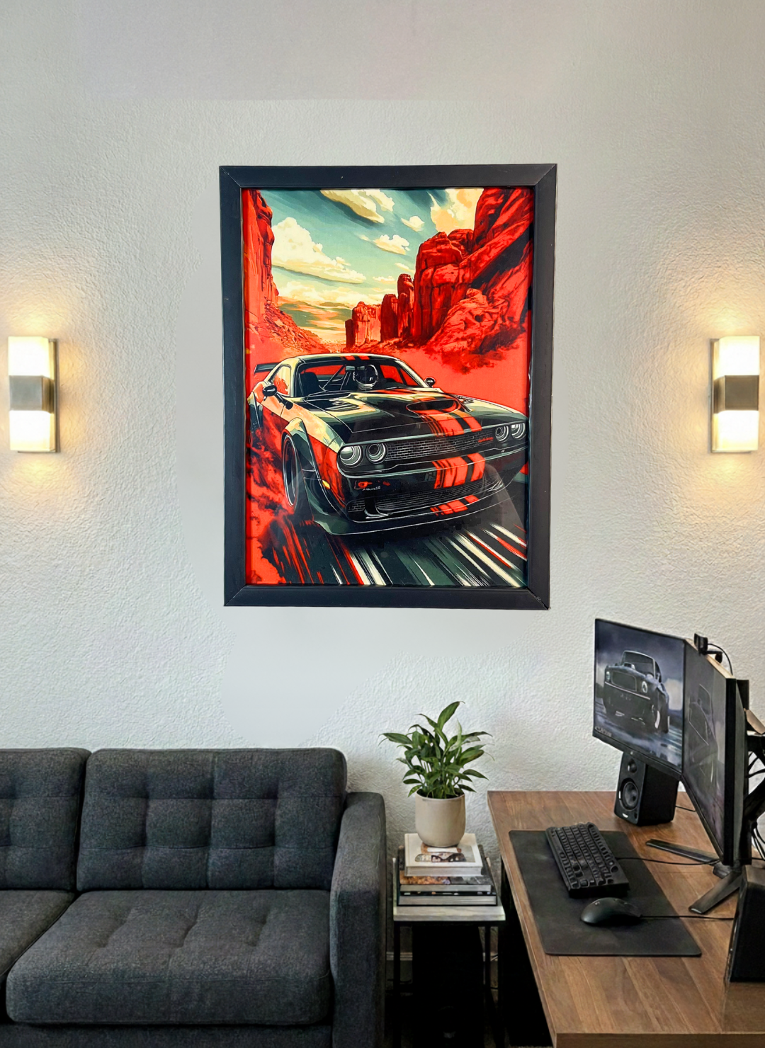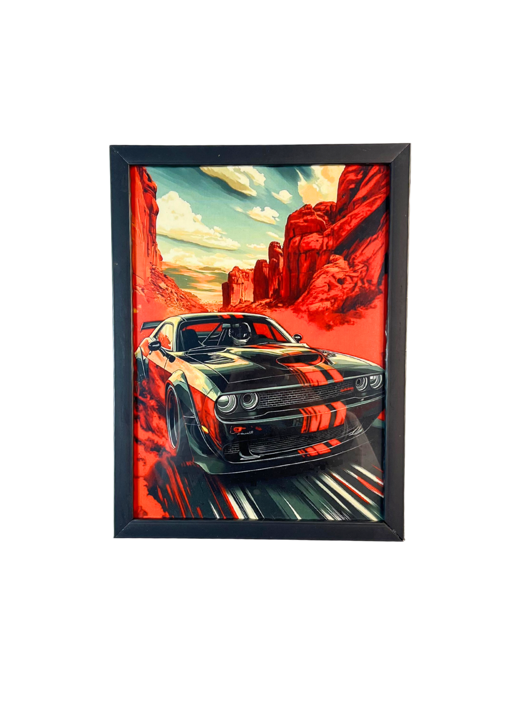 A premium car-inspired wall decor featuring a bold racing poster with a sleek black unbreakable frame. Designed for studios, offices, and personal spaces, this