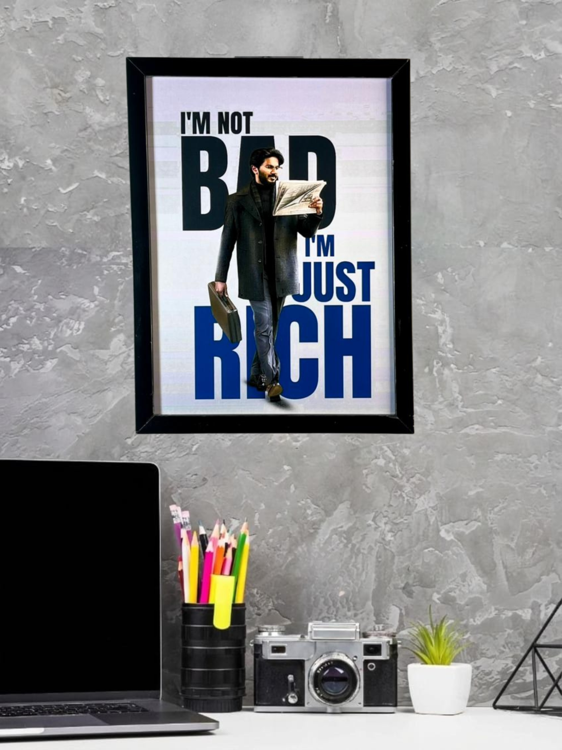 A premium motivational wall decor featuring powerful quotes and inspiring visuals, enclosed in a sleek black unbreakable frame. Designed for studios, offices, and personal spaces, this frame adds daily inspiration with durability and modern elegance.